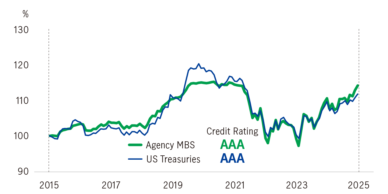 Combining Opportunistic Credit, Securitized, and US Government allocations, our High-quality Fixed income solution aims to provide a high, sustainable income opportunity with low volatility. Instead of tilting to a specific fixed income asset which is subject to credit risks (e.g. high yield bonds) or interest rate risks (e.g. treasuries), our unconstrained approach invests across bond sectors, credit qualities and capital structures with the aim to deliver a smoothed investment journey across market cycles.