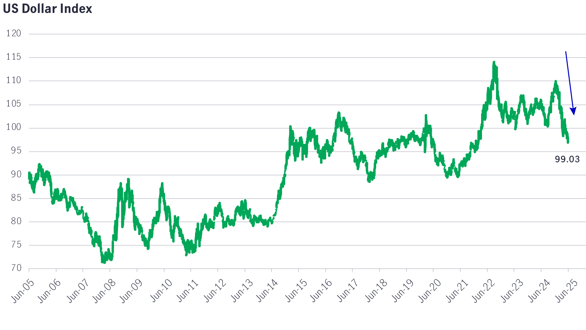 The first half of 2025 unfolded against a backdrop of heightened macroeconomic uncertainty. Geopolitical tensions and a shift in US trade policy—most notably the imposition of steep Liberation Day tariffs on 2 April, followed by a 90-day freeze—sparked volatility across global markets. Investors were prompted to reassess their exposure to US dollar assets amid growing concerns over policy direction and fiscal sustainability.