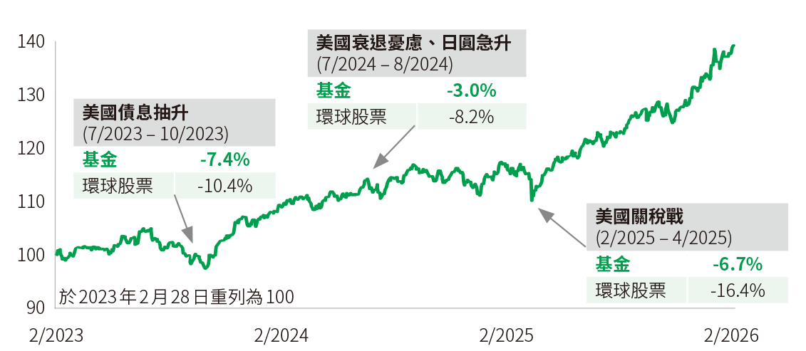 基金過去三年跑贏同儕,且表現波幅更低