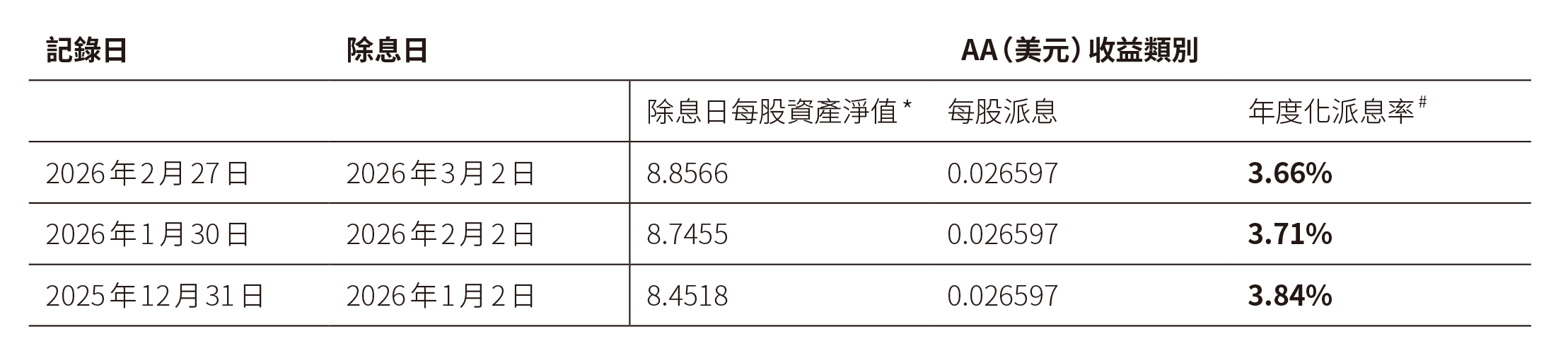* 只適用於AA(美元)收益類別。正數派息率並不意味可取得正回報。