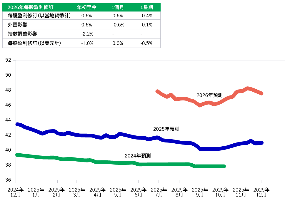 2026年亞洲股票盈利預測在2025年大部份時間向下修訂,但於第四季出現轉捩點,在科技股強勢帶動下,南韓、台灣及香港市場成為主要推動力。