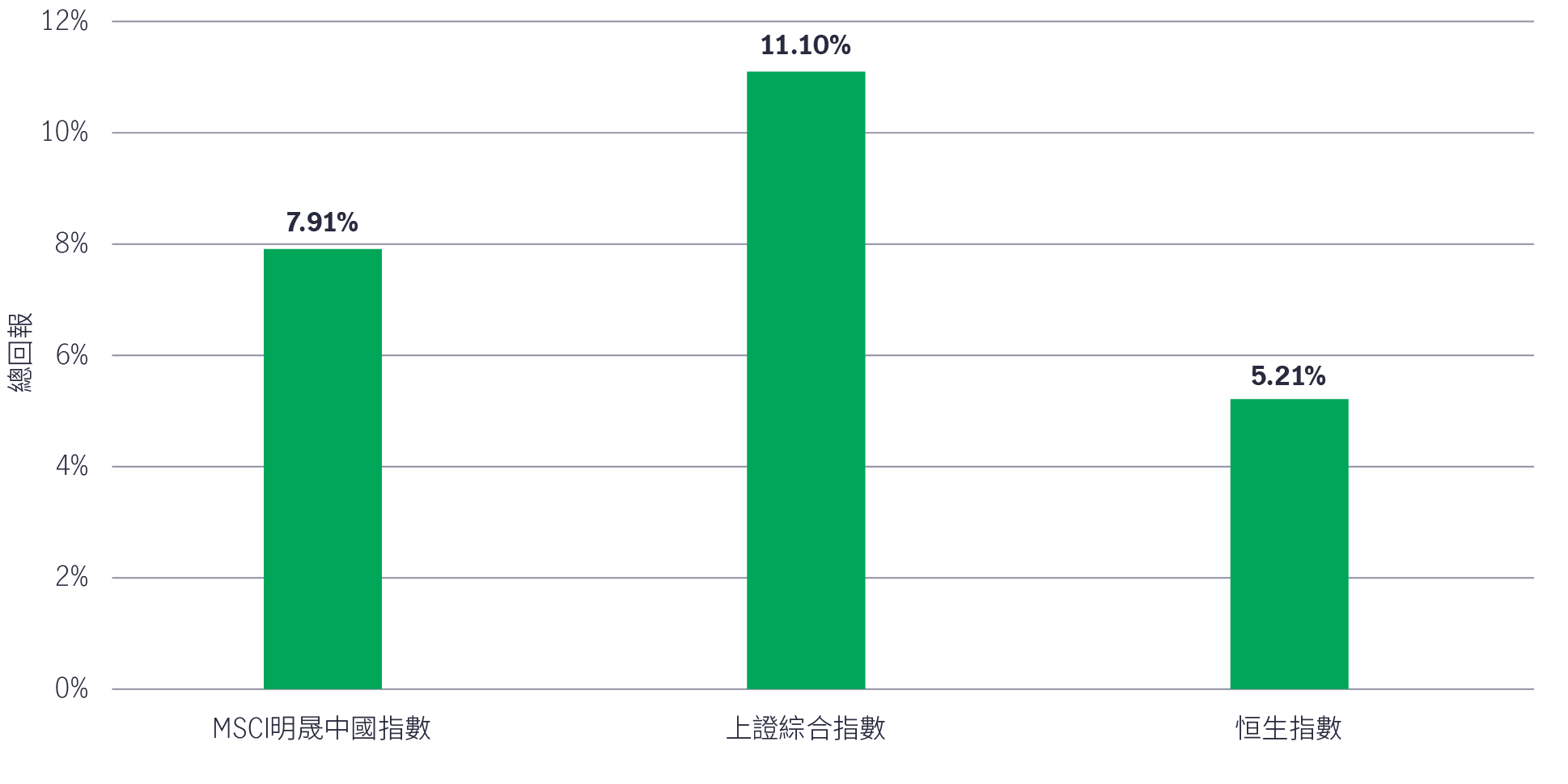 圖1:中國及香港股市受惠於政策支持回升(2022年5月起至今)