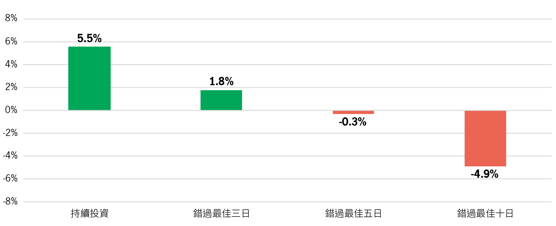 持續投資 vs. 錯過表現最佳的數日