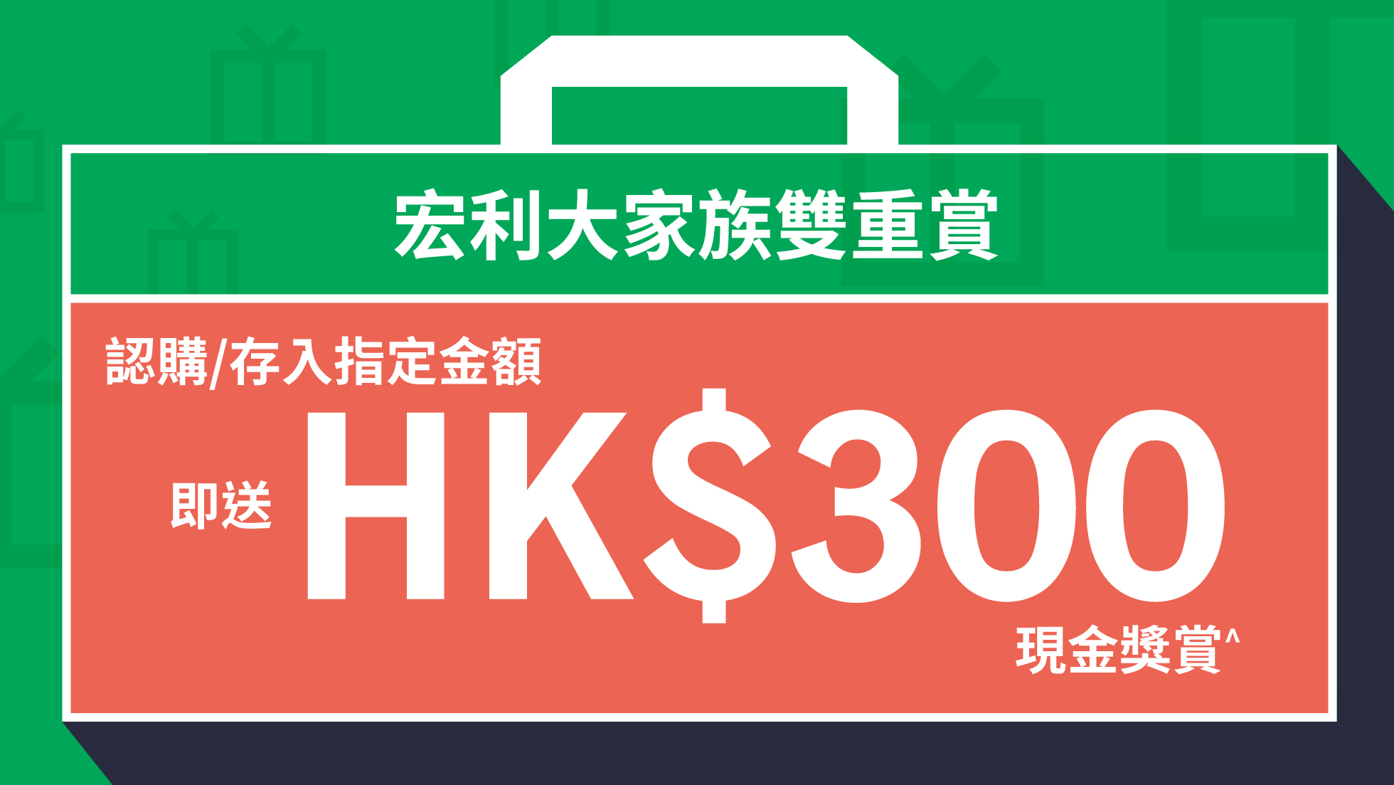 開立全新「宏利智晰投資服務」帳戶,而基金認購金額*或存入金額達HK$20,000或以上,可獲HK$300現金獎賞^。