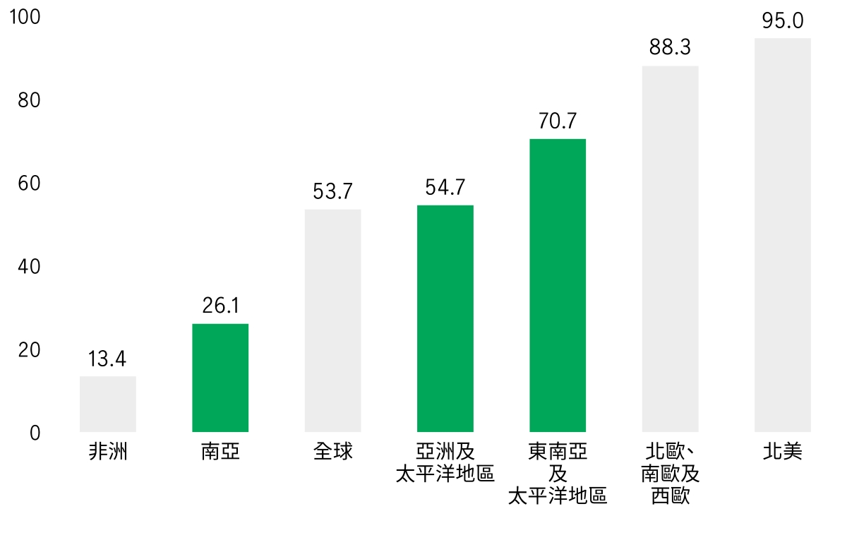 社會能夠為其退休人口提供的資助固然有限。對個人來說,投資於退休金仍然是最有機會達至享受退休生活的最佳辦法。整體上,就勞動人口獲供款式退休金計劃保障的有效覆蓋率而言,亞太區(54.7%)依然顯著低於北美洲(95.0%)和歐洲(84.3%)。我們希望進一步指出亞洲的覆蓋情況存在差異,近期數據反映東南亞及太平洋(70.7%)的覆蓋率高於南亞(26.1%)。