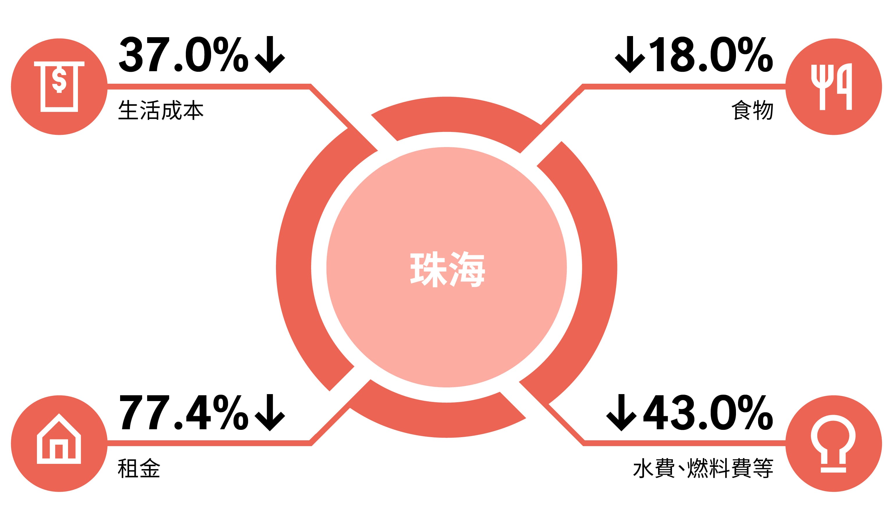 以下參考例子,有助探討在退休後到低成本地區建立第二居所的方案。下圖表示(以香港為基礎作比較),廣州、深圳、珠海和東莞等大灣區城市的整體生活成本(消費物價,不含租金)比香港為低,幅度介乎20%至40%。租金是主要的差距,據估計,四地租金較香港低60%至80%。由此可見,在上述大灣區城市的退休生活開支要求比香港低很多。